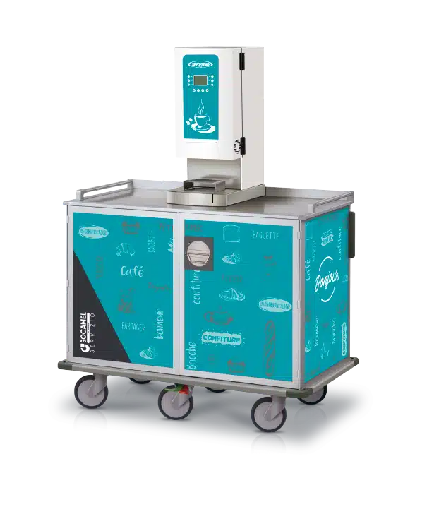 The SERVIZIO Café is the successful combination of a breakfast trolley and an automatic beverage maker.